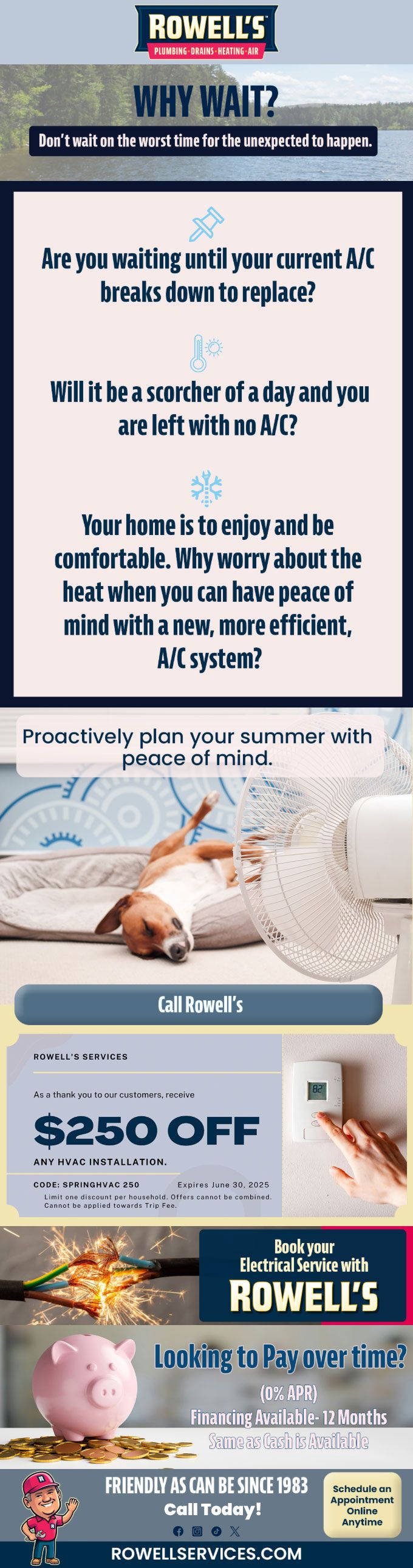 "Friendly As Can Be Since 1983!" When you need help with your plumbing, drains, heating, cooling or electrical in Londonderry, you can always rely on Rowell's Services! Call us now or book online!